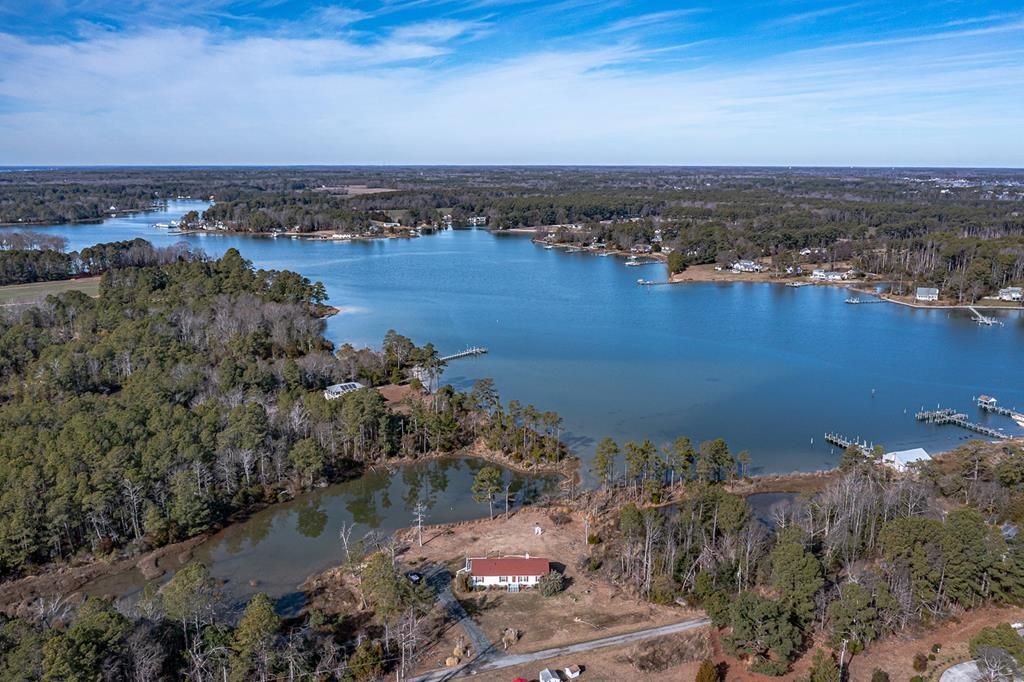 Enjoy the privacy and tranquility of living in this Ranch with 8.2 acres, with wide water views of Antiposion Creek, and close to the Bay. The three bedrooms, two bath home has a new roof, large waterside deck and enough room for casual year-round living. What sets this property apart from most waterfront residence is the "Seafood building, that is directly on the water. This is a very large footprint with awesome water views. This building has a large commercial size dock, deep water, and a boat lift. It is a truly a unique property, ideal investment and would be suitable for weekend retreats, short term rentals, (with county approval) or a small pasture for a horse. There is no HOA and you are only minutes to Windmill Point Marina, and the town of White Stone. Bring your imagination!