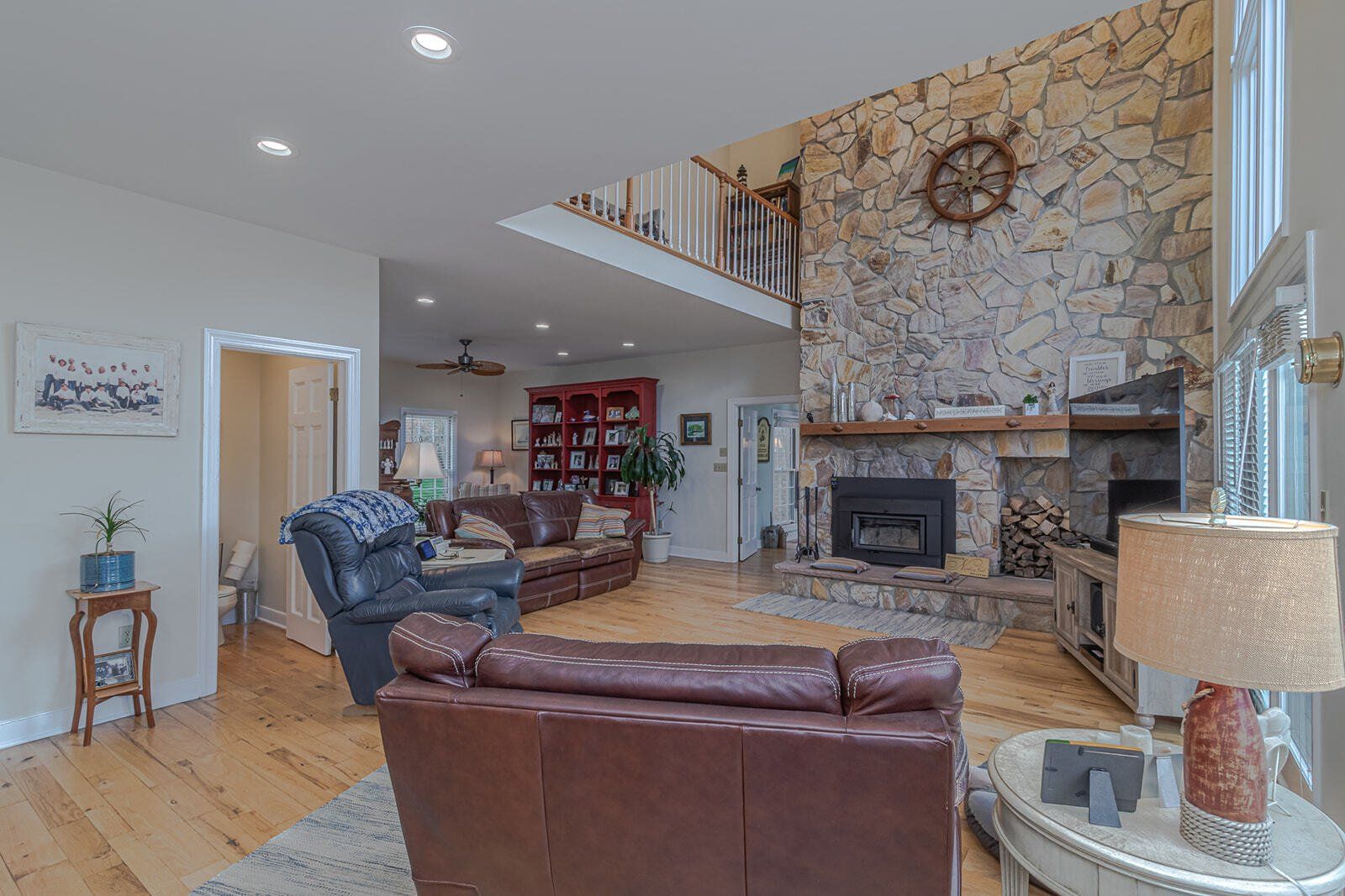 Rich in quality and drenched in sunlight, this open concept floor plan home has been meticulously maintained and offers beautiful curb appeal, fine craftsmanship, exquisite hardwood floors and a tranquil setting for life at its best. Enjoy incredible views from family room & large kitchen, owner's bedroom, and a guest room of sought after Cockrell's creek. The beautiful kitchen, which has a large island and lots of cabinet and counter space, opens up to a great room with a vaulted ceiling and a breathtaking stone fireplace. The open floor plan is what makes this such an amazing family and entertaining room. The downstairs master suite boast a fabulous walk in closet, a well planned en-suite bathroom with stand up shower, and jetted soaking tub. An expertly-crafted, spacious new additional wing was added, including an exquisite owner's suite with stunning water views and an amazing handicap bathroom of exceptional quality. The split bedroom plan can accommodate visiting family members and friends who can enjoy their stay in guest bedrooms and bathroom on this side of the home. Arches and heavy timber accents continue across the ceiling in the cocktail room to give it an old English charm. Experience resort living without ever leaving home as you lounge on the huge maintenance free deck enjoying your morning coffee or an evening cocktail. Go for a swim in the saltwater fiberglass pool, all with water views beyond. All of this plus you have 3 bedrooms, 2 full baths, and a bonus room over the garage that would be perfect for a craft or exercise room. So much opportunity in a manageable 4500sf footprint. This move-in ready waterfront is located in golf cart and/or boat distance to some of the areas most superb seafood restaurants and the famous local ice cream parlor. With a large, open floor plan and multiple indoor and outdoor living spaces, this home is an entertainer's dream. Don't miss the opportunity to make it your reality!