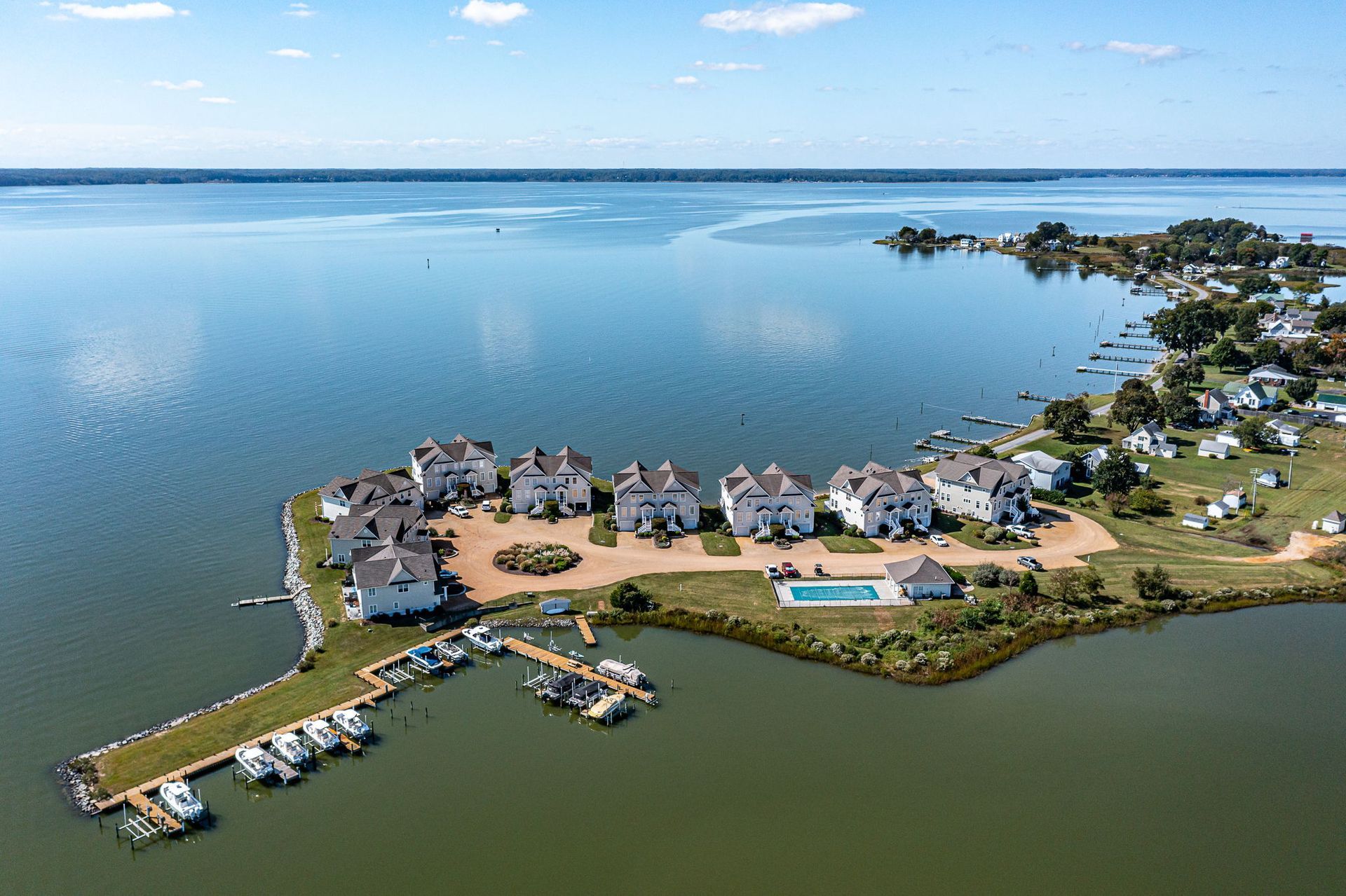Directions: From Kilmarnock take Rt 3 North. Turn left on Morattico road. Follow almost to the end. Turn left on Riverside Dr, and follow to the end. Enter Sloop Pointe, and it will be the 2nd unit on the right.