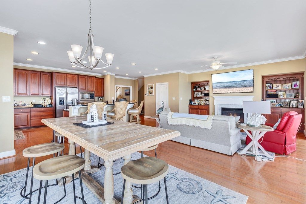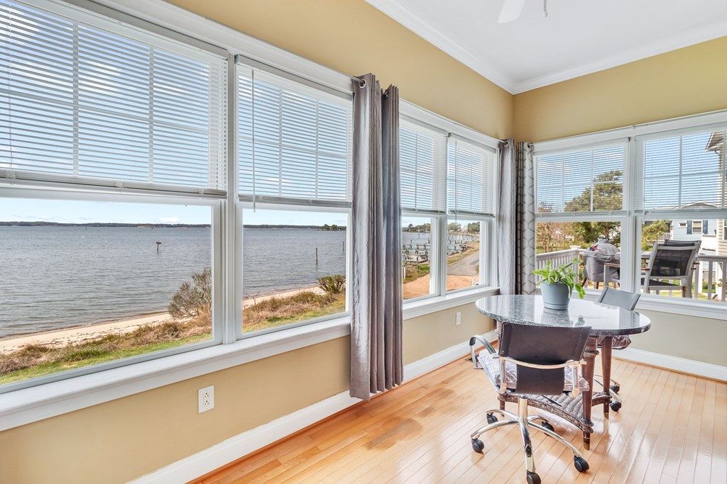 Welcome to an exceptional waterfront townhouse offering 3,552 square feet of beautifully designed living space along the scenic Rappahannock River. Perfectly positioned to take full advantage of its breathtaking setting, this home showcases wide, unobstructed water views and direct access to a sandy beach—creating a true coastal retreat just steps from your door. From the moment you enter, you’ll appreciate the warmth and elegance of rich hardwood floors that flow throughout the main living areas. The spacious, open-concept layout is thoughtfully designed for both everyday living and entertaining, with expansive windows that invite natural light and frame the stunning river vistas. The custom kitchen is a standout feature, offering granite countertops, quality cabinetry, and ample workspace for preparing meals while staying connected with family and guests. With four generously sized bedrooms and four full baths, there is plenty of room for family, guests, or even a home office setup. Each level of the home is designed to provide comfort and privacy, making it ideal for both full-time living and weekend getaways. The fully finished basement adds an entirely new dimension to the home, featuring a cozy fireplace and a wet bar. This versatile space can easily serve as a recreation room, guest suite, or private retreat. Step outside and embrace the waterfront lifestyle. Enjoy peaceful mornings watching the sunrise over the river, afternoons on the sand beach, and evenings with cool breezes and panoramic views.