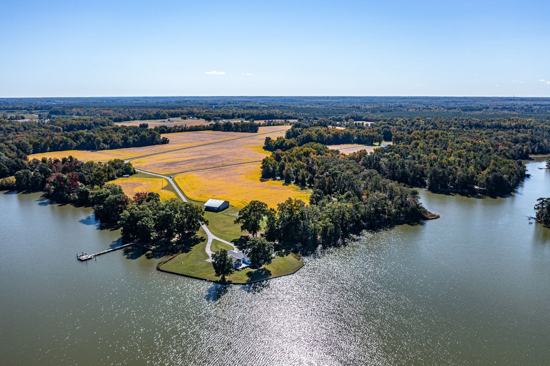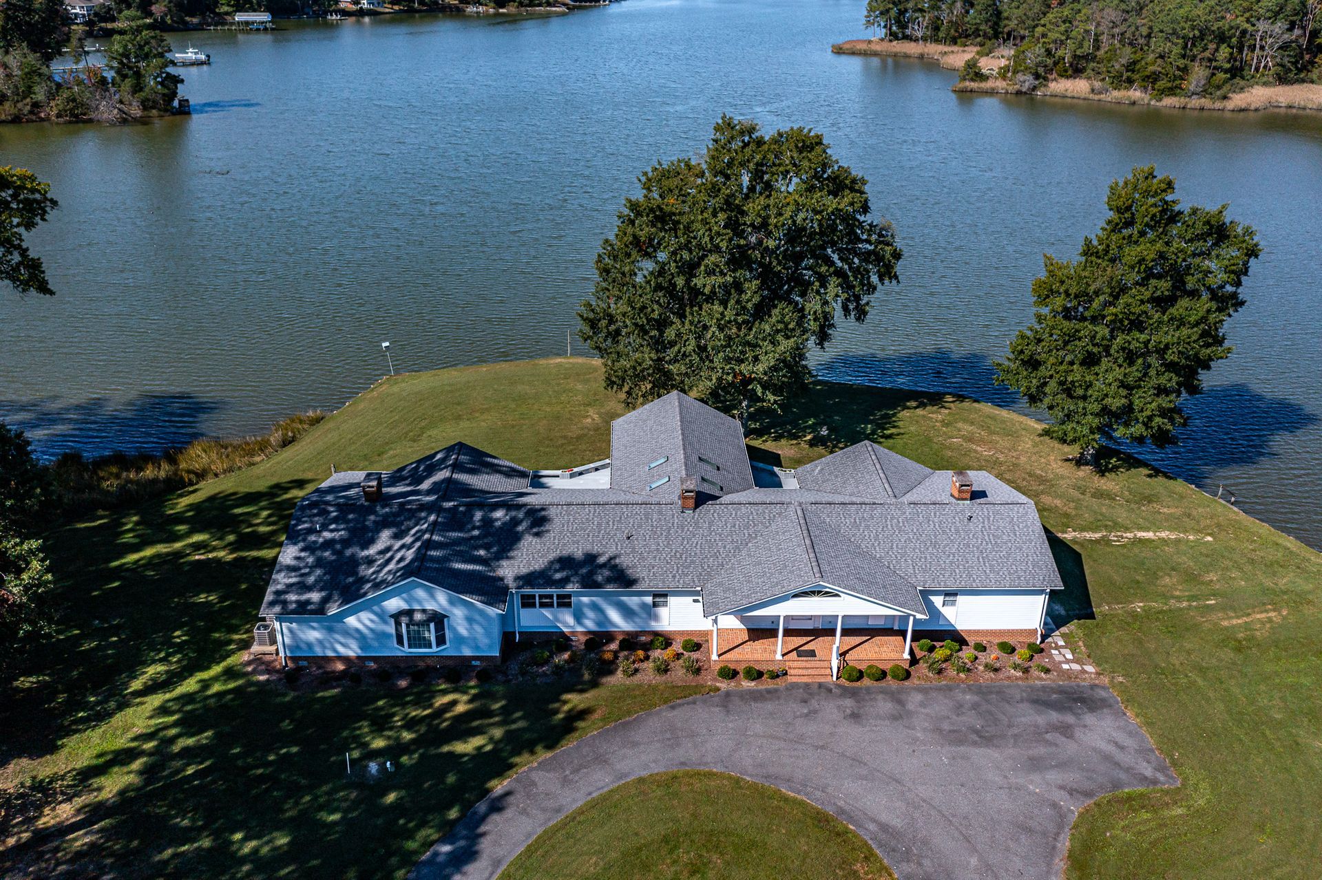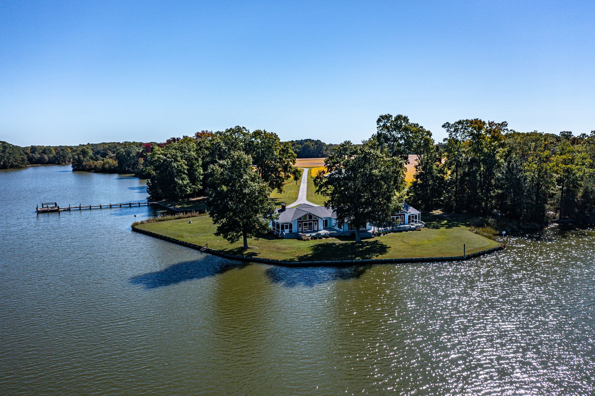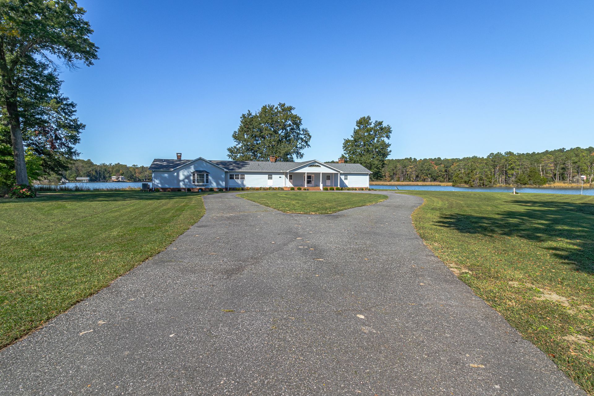 If you’re looking for a spacious, private waterfront property with water and aircraft access, look no further! 585 White Hall Road sits on 135 acres with eight additional waterfront lots that are already perked. The 4,400 sqft home has four bedrooms and three full bathrooms, the primary bathroom being recently remodeled. You can enjoy the beautiful views from the large family room or curled up in front of one of the four fireplaces inside the home. The two screened-in porches have their own fireplaces, as well, and there is a large entire back-side deck to appreciate the surrounding nature.