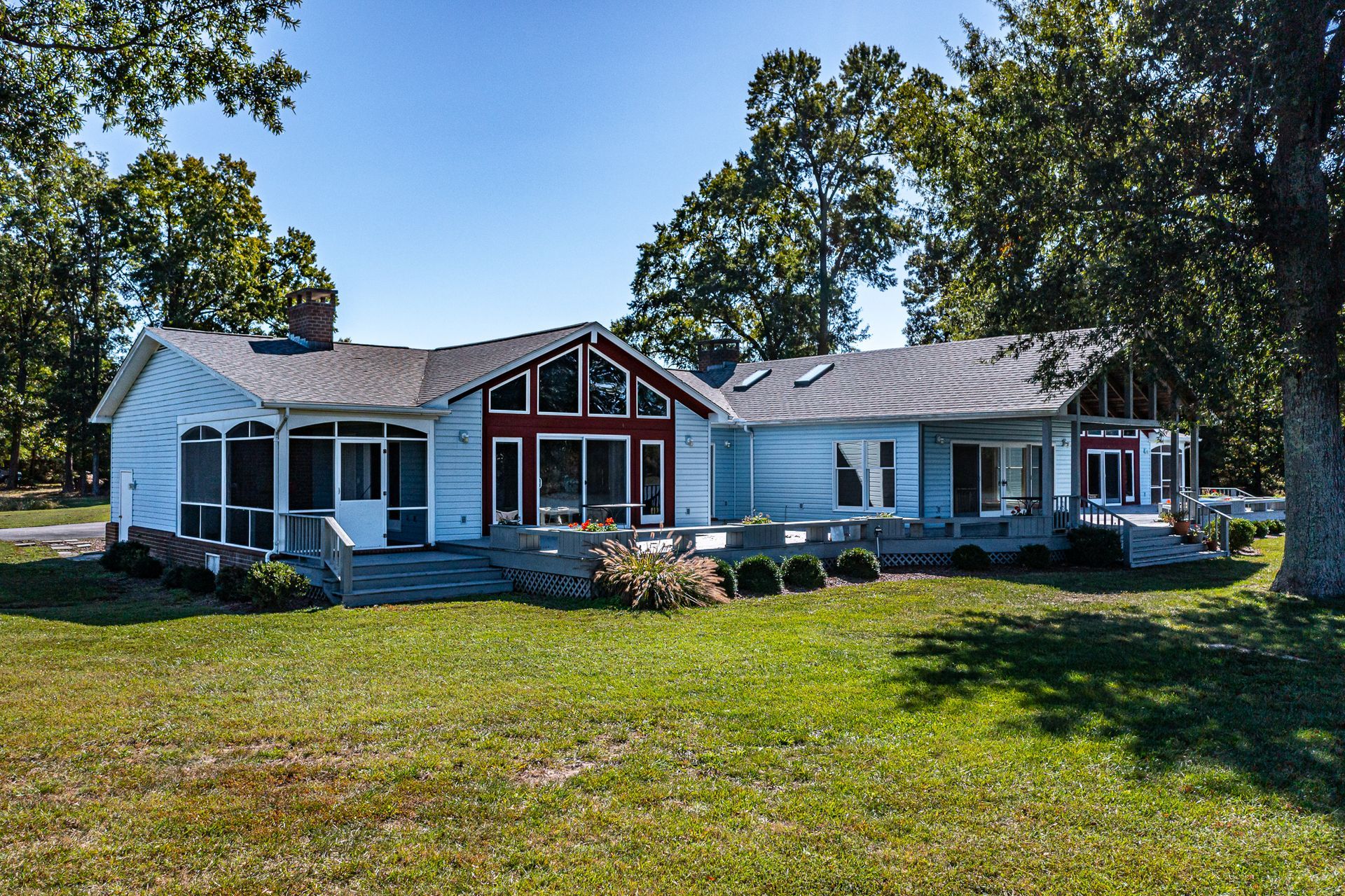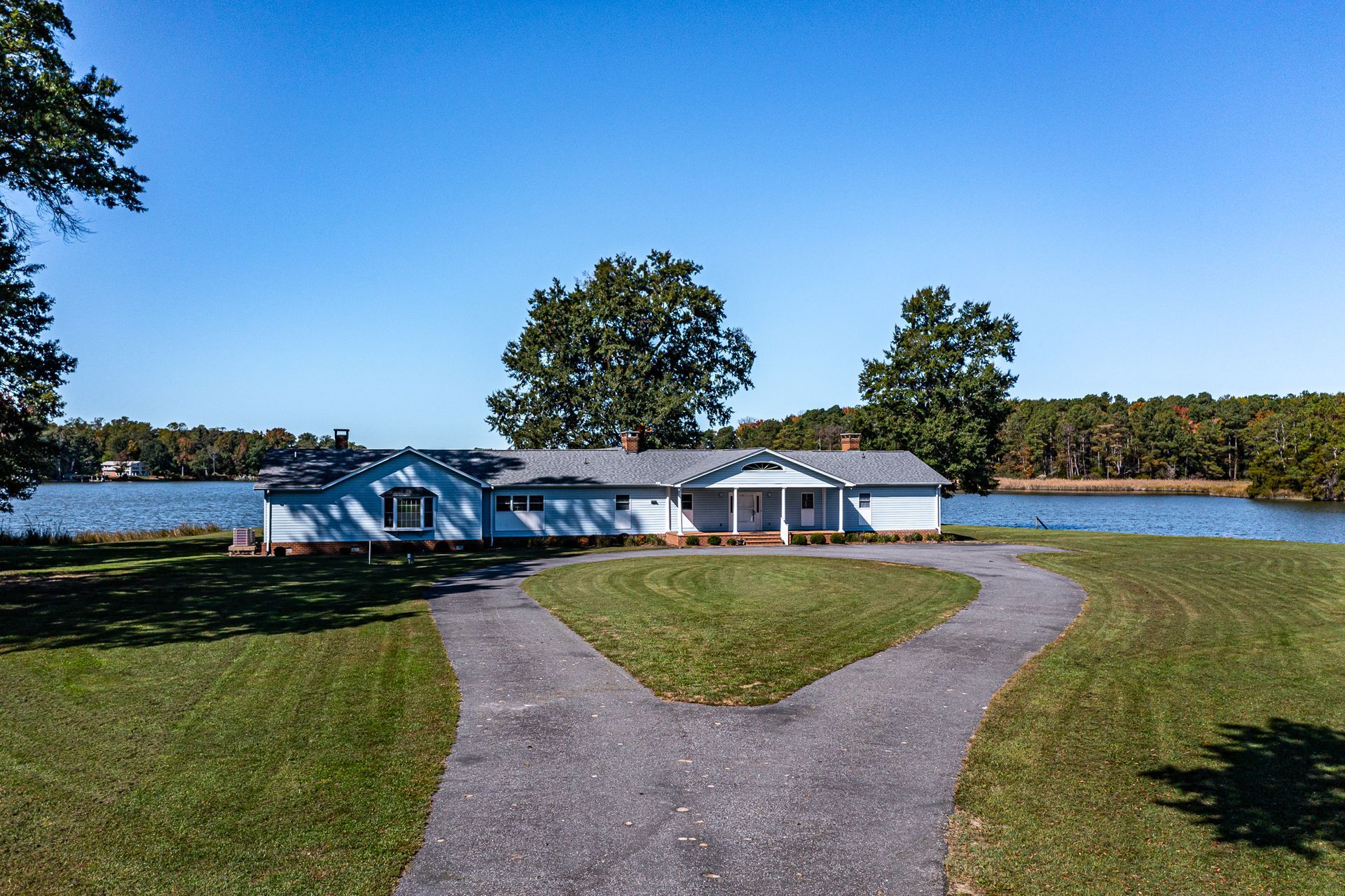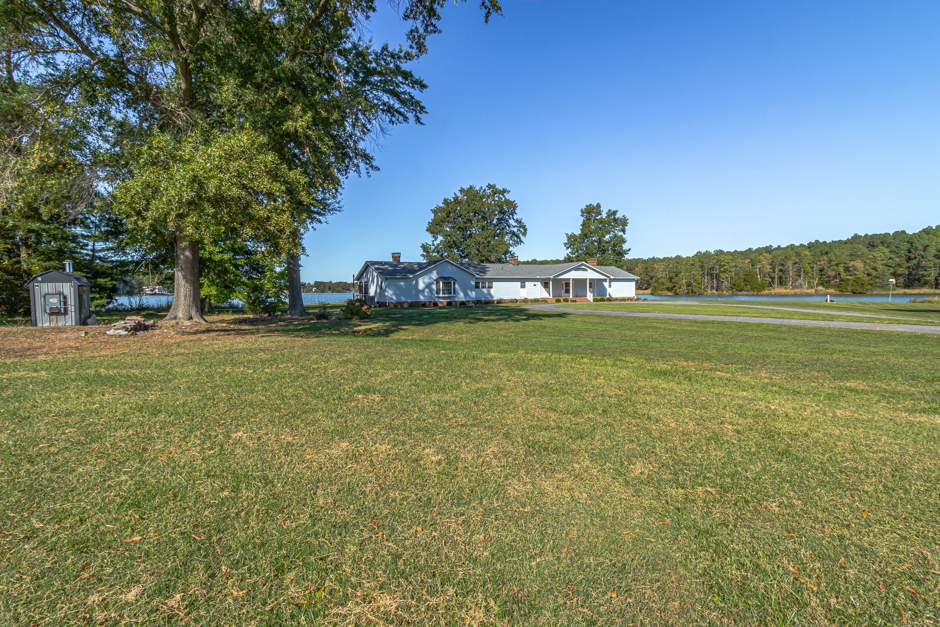 If you’re looking for a spacious, private waterfront property with water and aircraft access, look no further! 585 White Hall Road sits on 135 acres with eight additional waterfront lots that are already perked. The 4,400 sqft home has four bedrooms and three full bathrooms, the primary bathroom being recently remodeled. You can enjoy the beautiful views from the large family room or curled up in front of one of the four fireplaces inside the home. The two screened-in porches have their own fireplaces, as well, and there is a large entire back-side deck to appreciate the surrounding nature.