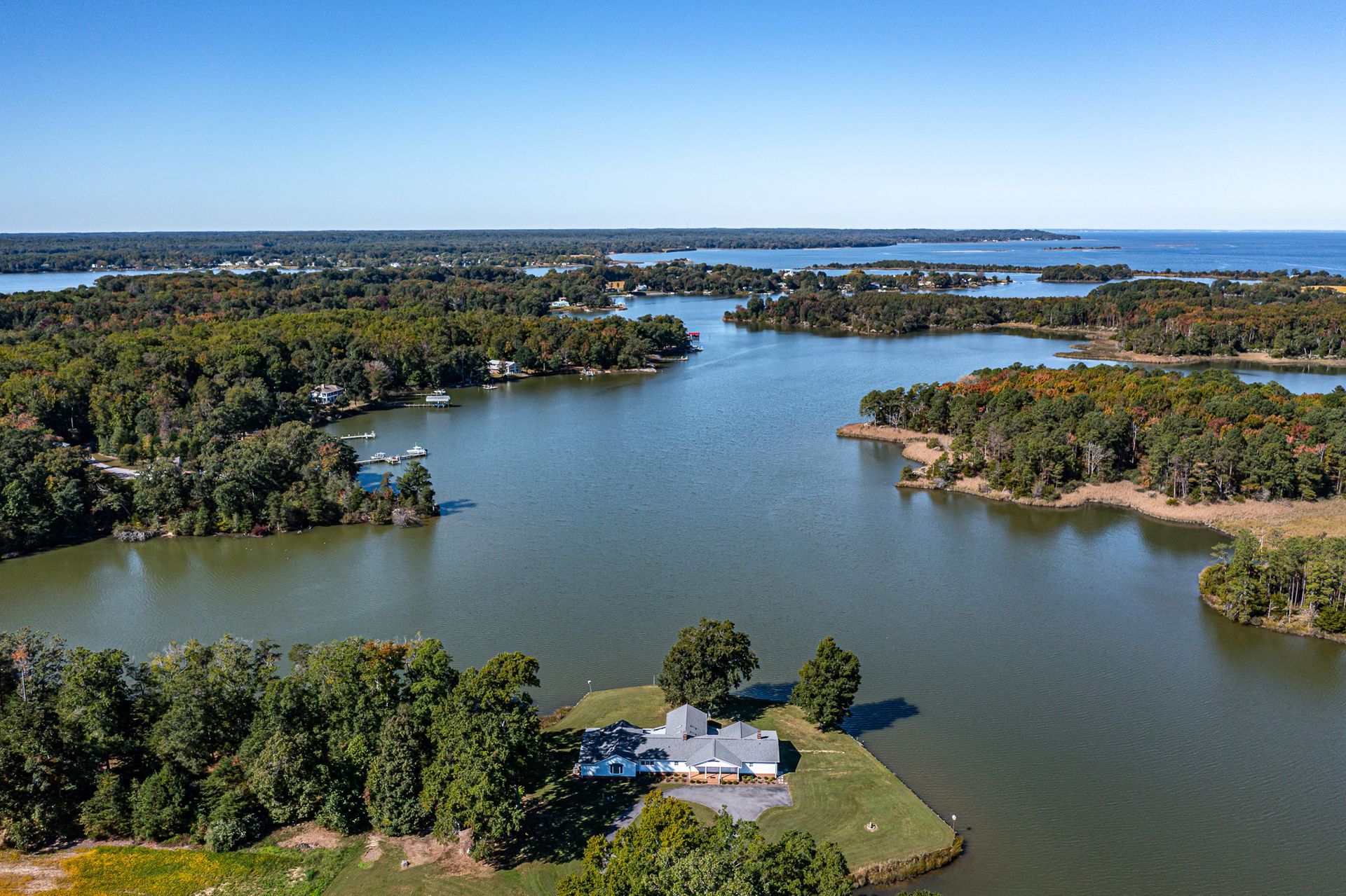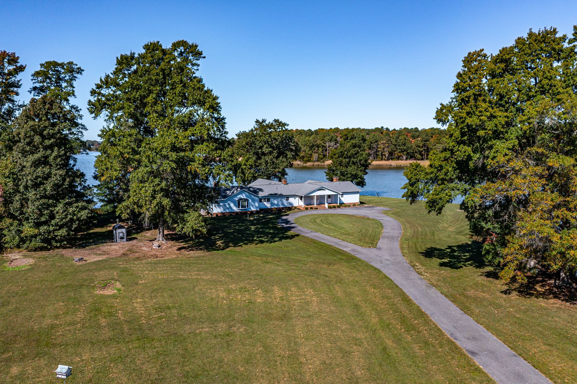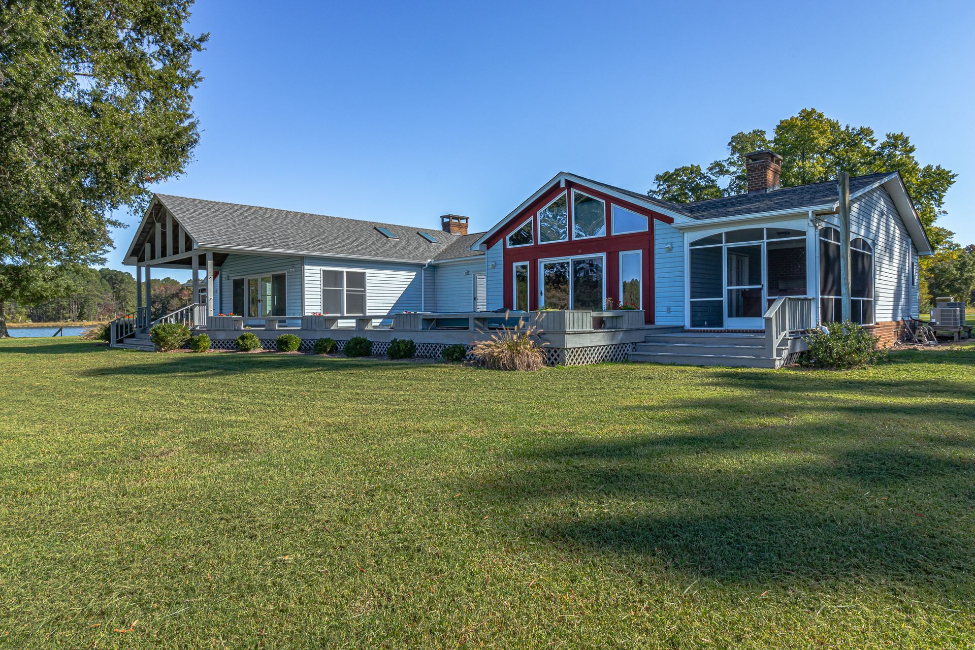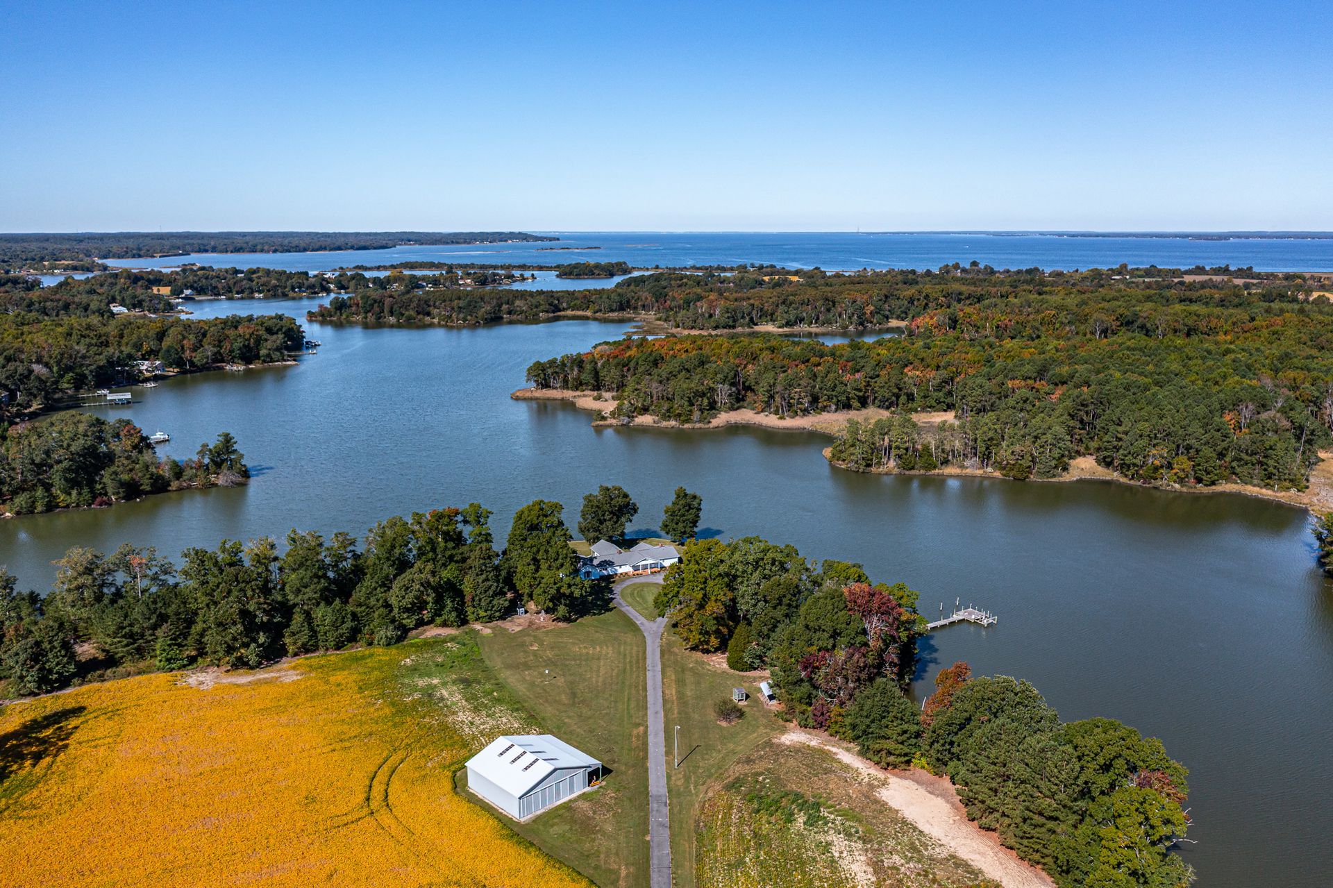 If you’re looking for a spacious, private waterfront property with water and aircraft access, look no further! 585 White Hall Road sits on 135 acres with eight additional waterfront lots that are already perked. The 4,400 sqft home has four bedrooms and three full bathrooms, the primary bathroom being recently remodeled. You can enjoy the beautiful views from the large family room or curled up in front of one of the four fireplaces inside the home. The two screened-in porches have their own fireplaces, as well, and there is a large entire back-side deck to appreciate the surrounding nature.