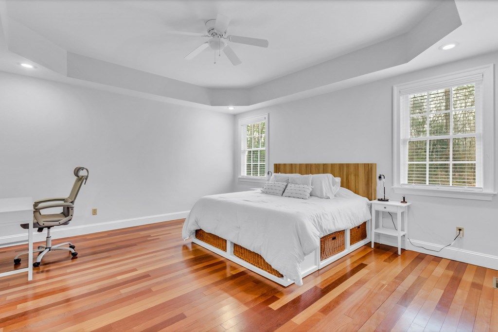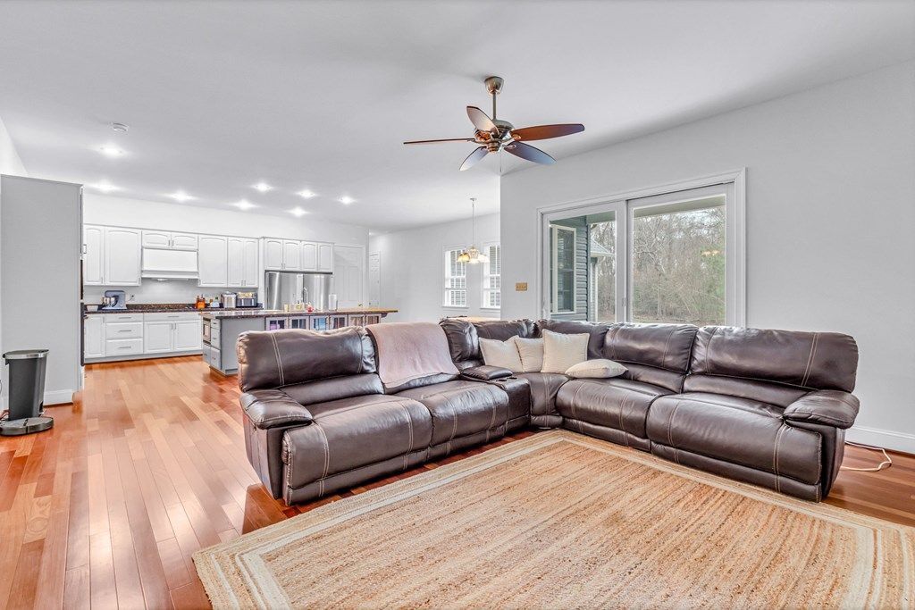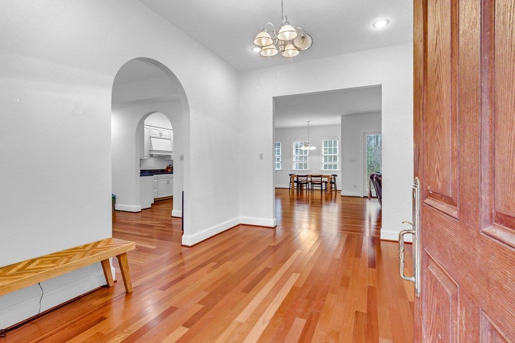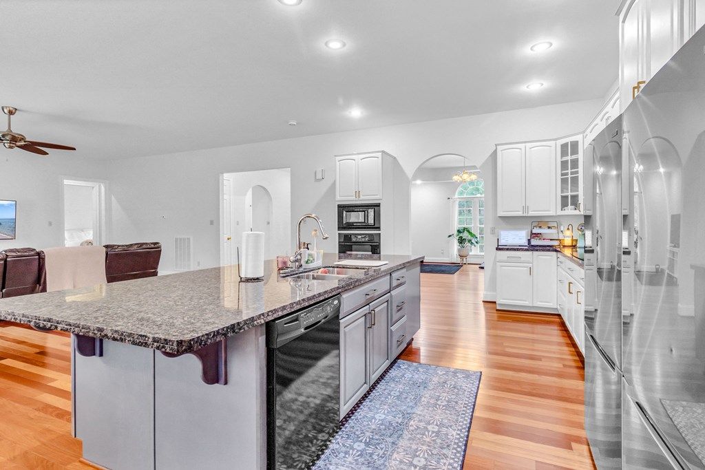 Enjoy the benefits of waterfront living without the maintenance!! This stunning 3,348 sq ft custom-built home was thoughtfully designed with flexibility in mind, this home delivers both open gathering spaces and private retreats that easily adapt to the way you live. Step inside to find soaring ceilings and warm Brazilian cherry floors that flows throughout the main living areas. The layout flows seamlessly into the impressive Chef's Kitchen, featuring custom cabinetry, doubled granite countertops, stainless steel appliances, double ovens, and a massive Island perfect for everyday meals or entertaining along with a spacious Walk-In Pantry offering exceptional storage and organization. A separate Formal Dining Room provides a beautiful space for holidays and special gatherings. The large Primary Suite offers a private retreat with tray ceiling detail, a spa-inspired Ensuite Bathroom featuring a soaking tub, oversized tile shower, double vanities and two expansive Walk-In Closet with custom built-ins. Two additional Bedrooms, bonus room and two full baths, make this floor plan ideal for family, and/or guests. Outdoor living is just as inviting, with a spacious back Porch overlooking the flat, private backyard already cleared and ready for wide-open play space. Located in a sought-after waterfront community offering water access and exceptional amenities, including a beautiful sand beach, pool, club house, pond, RV/boat storage, jogging trail etc... Whether hosting friends or enjoying quiet evenings outdoors, this home embraces easy indoor-outdoor living.