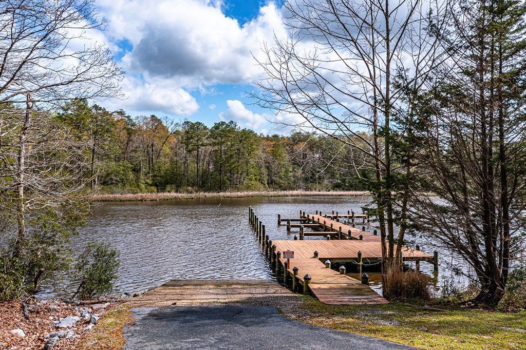 Embrace waterfront living in this "spacious" move-in-ready home. This property provides the perfect blend of serenity and relaxation. The main level features beautiful hardwood floors throughout, an open kitchen (with granite countertops) that flows into a large great room, with a cozy fireplace. The kitchen is equipped with stainless steel appliances, a central island with an eat-in bar. The main floor also includes two bedrooms and one full bathroom. You'll be impressed with the glassed-in porch, an ideal spot to relax and drink your morning coffee, while enjoying nature. Upstairs is the Primary Suite with Large Bath and two big walk-in closets. Two very generous sized secondary bedrooms are also upstairs along with a full hall bath. Also, upstairs is a huge Recreation room with a home theater. The expansive walk-out basement provides endless possibilities, from creating additional living space to setting up the ultimate workshop or "man cave". Home also features a multi-car garage and another bay for your boat or golf cart. Directly across from the pier is Bush Mill Nature preserve. This is a 144-acre nature preserve that is home and resting area for an abundance of waterfowl and wading birds.